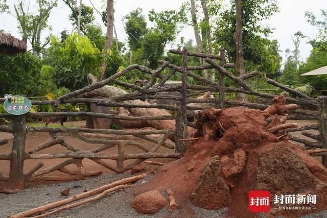 4月25日,海南热带野生动物园。大量树木在“摩羯”的影响下折断、倒伏。痛定思痛,马雪峰表示,这场灾难证明了海野在应对台风灾害时仍存在诸多的不足,其中包括,海野继承了原来国有农场中的橡胶树、芒果树和槟榔树等不抗耐风树种;工作人员只准备了7台大型油锯,在救灾时不够用;海野员工之间使用公网对讲机通联,断网后,只能靠人力互相传递信息;供电、供水系统、监控光缆、部分动物笼舍围栏、场馆屋顶、旅游辅助设施,抗台风设计不足;灵长类等动物的避难空间防风措施不够。